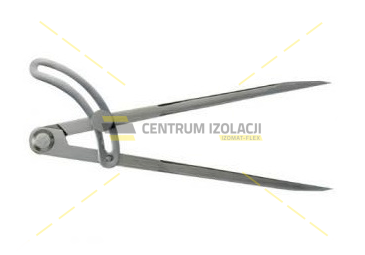 Cyrkiel traserski z łukiem nastawnym Wykonanie: Ze stali specjalnej, przegub nitowany, ostrza hartowane, szlifowane i drobno polerowane.