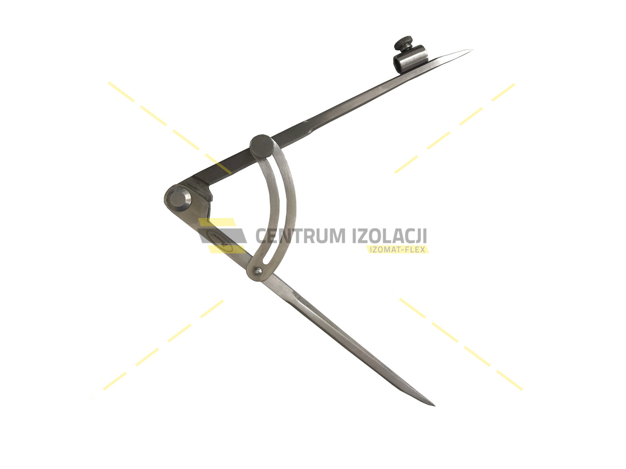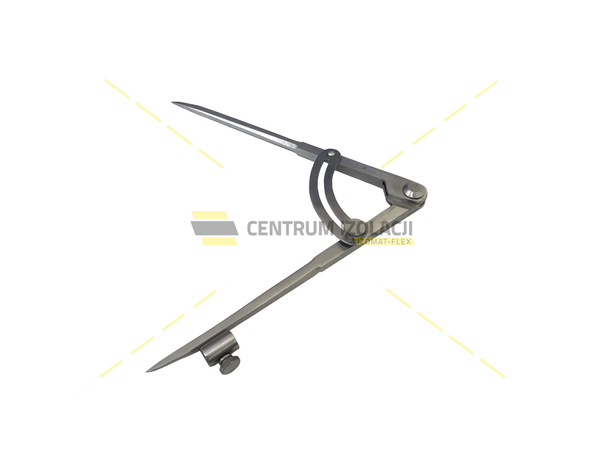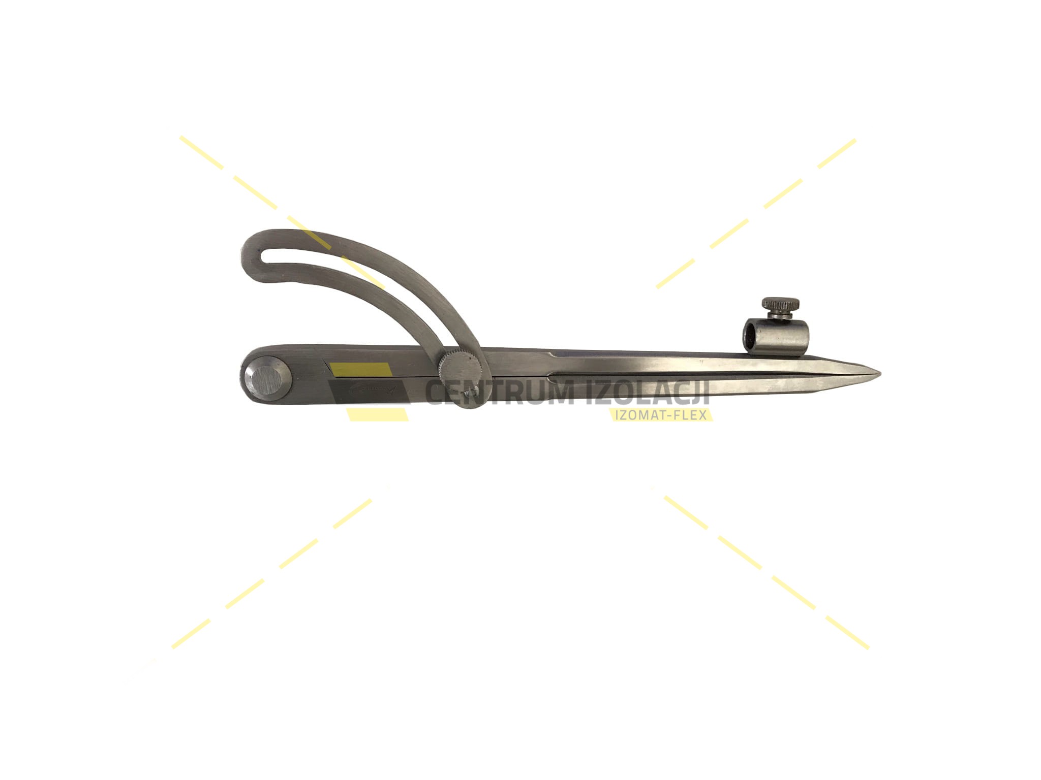 Cyrkiel na ołówek, traserski z łukiem nastawnym. Wykonanie: Ze stali specjalnej, przegub nitowany, ostrza hartowane, szlifowane i drobno polerowane.