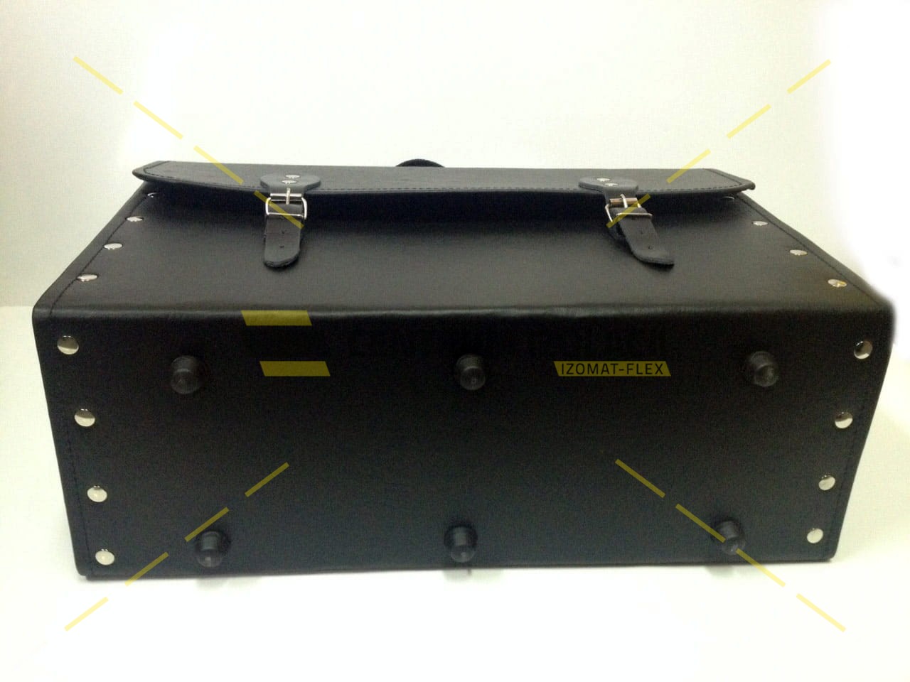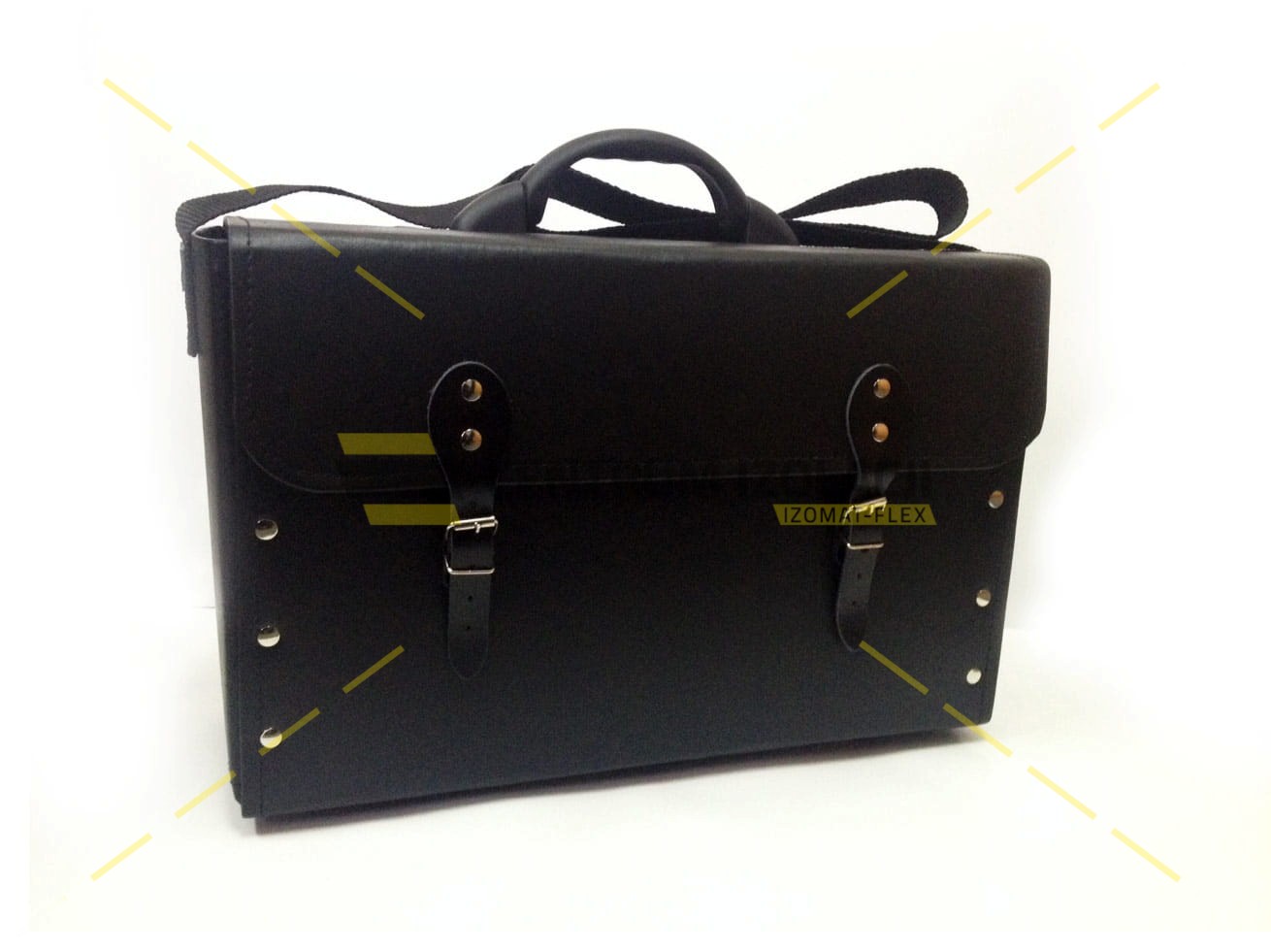 Torba wykonana jest ze skóry ekologicznej. Usztywniona tekturą litą, nitowana i szyta.